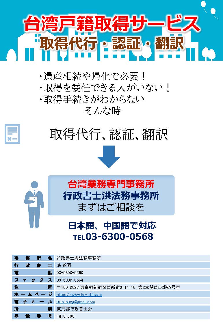 ※相続手続きなどで台湾の戸籍謄本が必要!